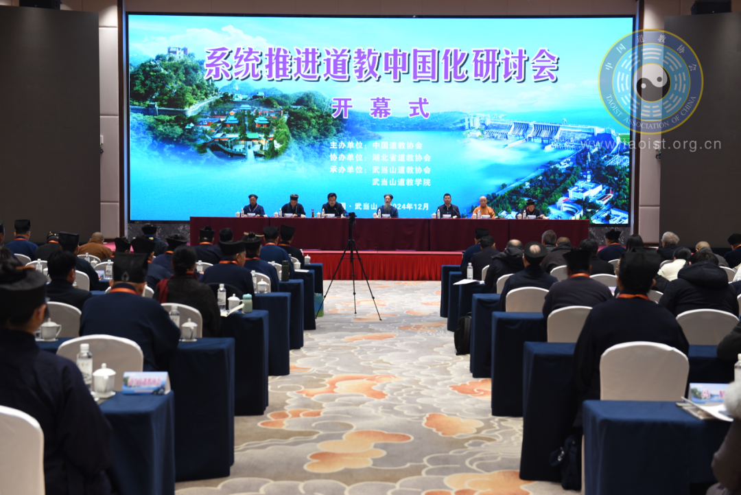 2024年12月25日至26日,由中国道教协会主办、湖北省道教协会协办、武当山道教协会和武当山道教学院承办的系统推进道教中国化研讨会在湖北武当山召开。中央统战部副部长、国家宗教事务局局长陈瑞峰出席会议并讲话。中国道教协会会长李光富在开幕式上做主旨发言,在闭幕式上做总结讲话。湖北省委常委、统战部部长宁咏,中国佛教协会会长演觉,十堰市委常委、统战部部长张涛出席会议并致辞。浙江大学敦和讲席教授盖建民做学术总结。 中国道教协会副会长张金涛、孟至岭、袁志鸿、胡诚林、张高澄、吴诚真、董中基、张诚达、吉宏忠、张明心、邓信德、袁宗善、梁崇雄、吴理之,秘书长匡盛;十堰市武当山道教协会会长刘信阳;中央统战部有关同志,湖北省、十堰市、丹江口市、武当山特区相关党政部门领导,以及来自全国各地的学术界、道教界代表等参加会议。